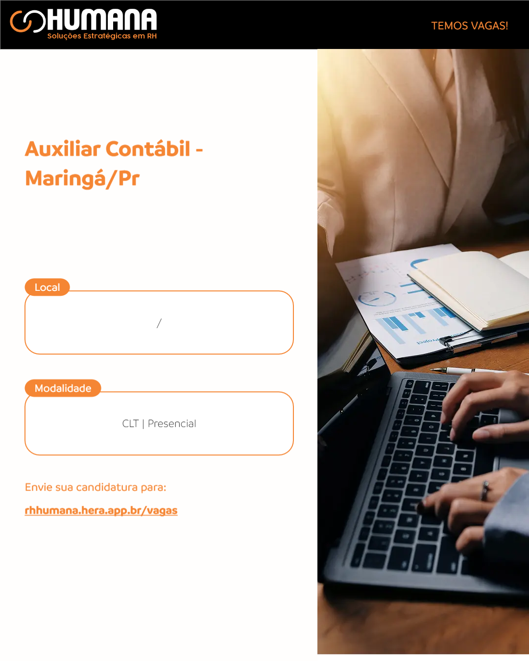 Estamos em busca de um(a) Assistente Contábil / DP para atuar em Maringá/PR. O(a) profissional será responsável por executar atividades relacionadas à contabilidade e departamento pessoal, como lançamentos contábeis, conciliações bancárias, processamento de folha de pagamento, rotinas de departamento pessoal, como rescisão, admissão, férias, controle de jornada, cálculos trabalhistas. É essencial ter noções em legislação trabalhista e tributária, além de experiência com sistemas contábeis.