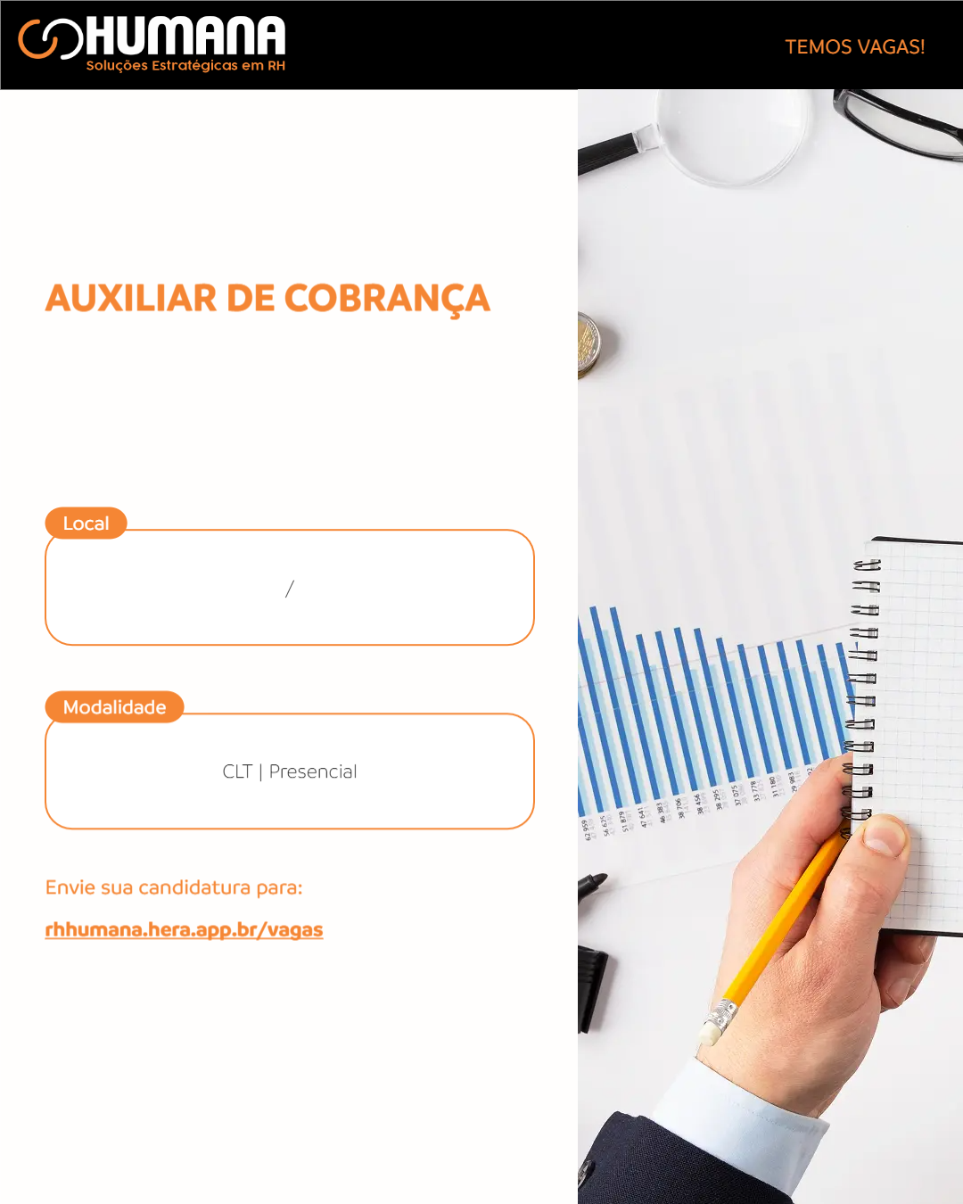 Responsável por auxiliar nas atividades relacionadas à cobrança de clientes, garantindo a recuperação de créditos e mantendo um bom relacionamento com os mesmos.