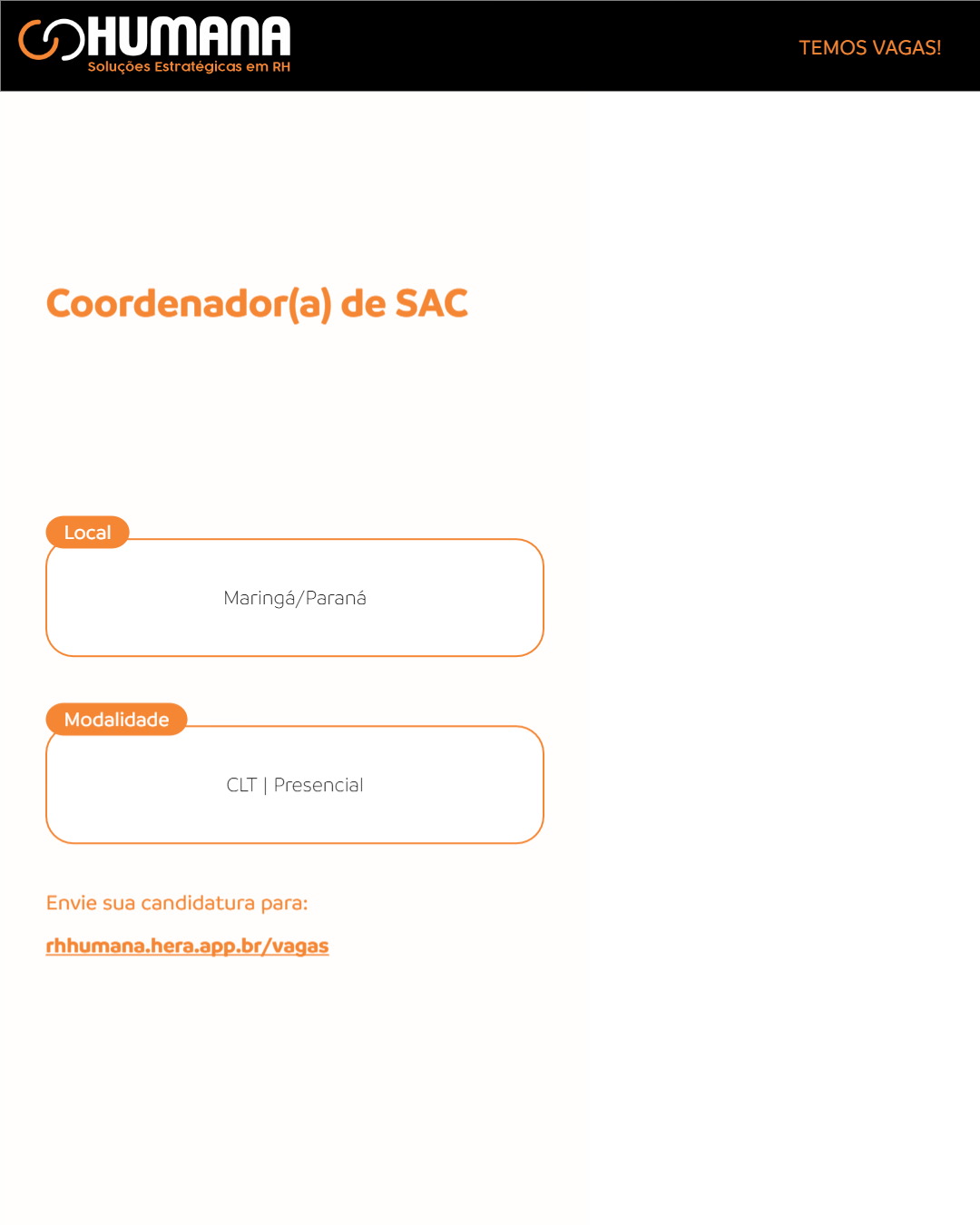 • Experiência sólida em gestão de SAC e atendimento ao cliente em empresas de médio ou grande porte, preferencialmente no setor de varejo, e-commerce ou importação;