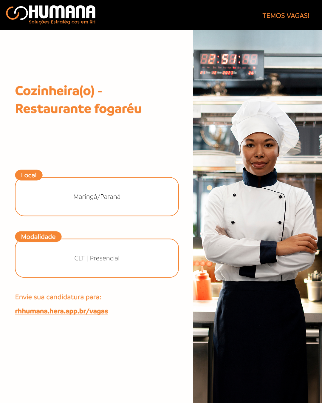 Experiência comprovada em cozinha profissional (restaurantes, cozinhas industriais ou similares);